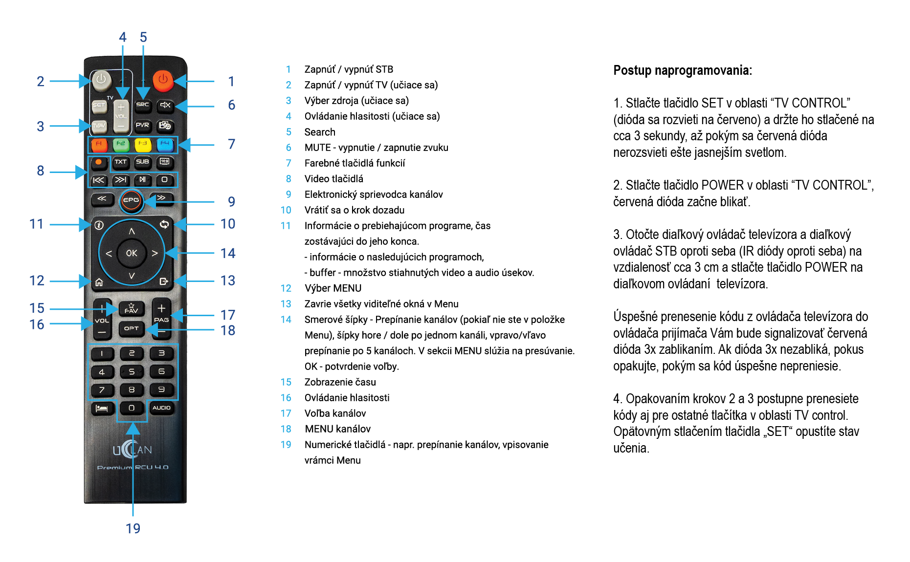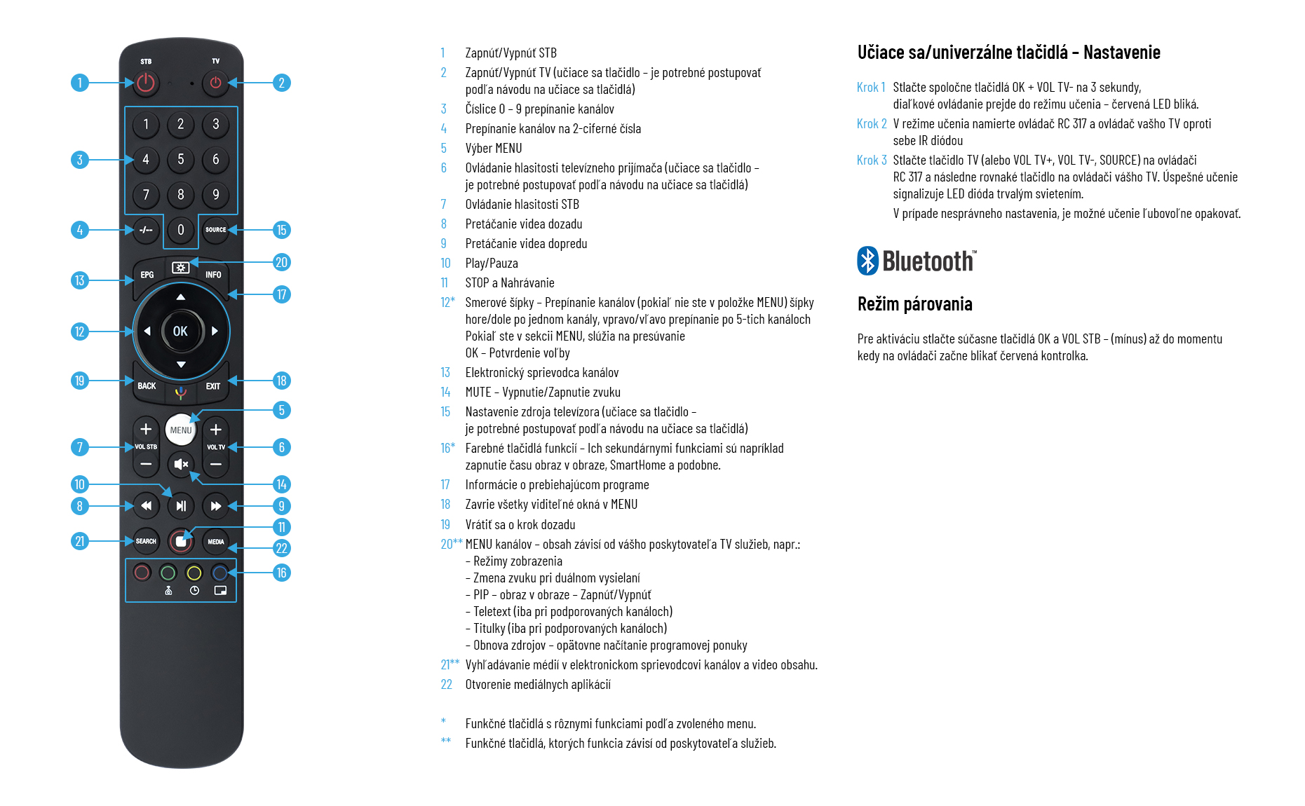 Pozrite si video o univerzálnom diaľkovom ovládači na Set-top box a TV obrazovku. Nájdete v ňom aj návod na párovanie a používanie tohto ovládača.