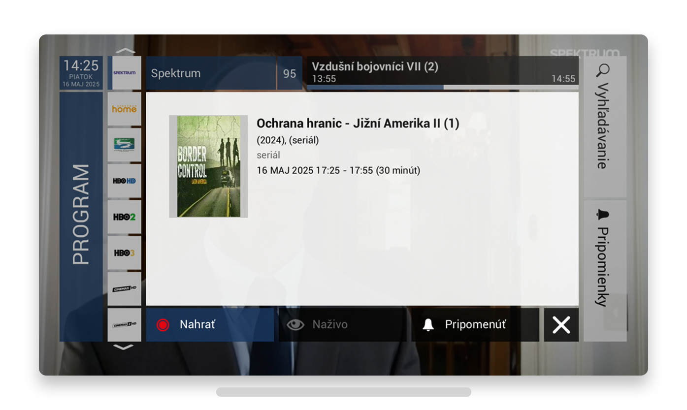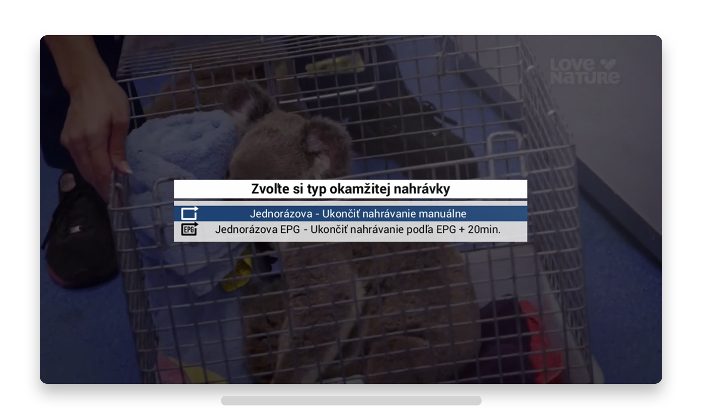 Jednorazová nahrávka – Nahrávanie sa spustí a ukončí podľa času v EPG