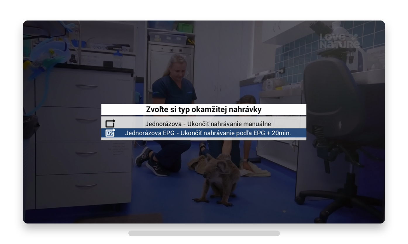 Jednorazová EPG (nahrávanie sa ukončí podľa EPG s automatickým pridaním +20 minút)